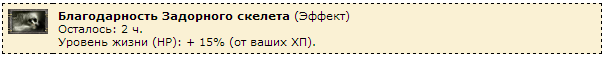Əgər siz kvesti Задорный Скелет dən başlasanız kvestin sonunda 2 saat müddəti olan 15% can bonusunu alacaqsınız.