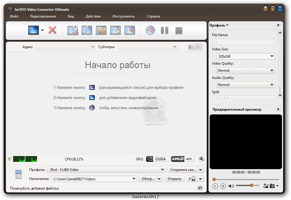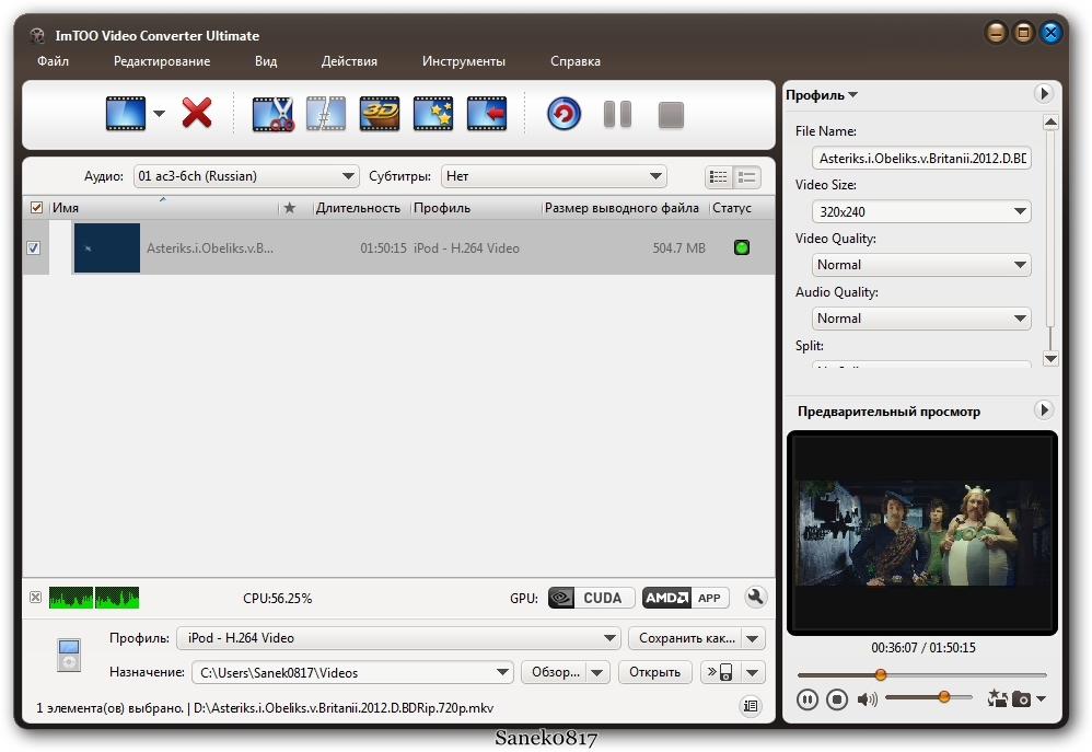 Proqramın versiyası: 7.7.2 Build 20130225 Proqramın dili: Eng + Rus Proqramın aktivləşməsi: Serial key Sistem tələbatı:Windows XP / Vista / 7 / 8 Proqramın ölçüsü: 37 mb Proqram haqqında: ImTOO Video Converter Ultimate - Multimediya fayllarının həddən artıq yüksək keyfiyyətdə konvertə edilməsi üçün yaradılmış proqramdır. Proqram demək olar bütün məhşur formatları dəstəkləyir: AVI, WMV, MPEG-1/2/4, MOV, 3GP, ASF, MP4, MP2, MP3, WMA, WAV, M4A, AAC, AC3 и OGG, High-Definition videoların kodirovkası və dekodirovkası. Генеральные свойства: • Конвертирование знаменитых видео форматов • Поддержка MPG, WMV, MP4, 3GP, MOV, RM, DVD, VCD, AVI, ASF и вторых форматов • Извлечение акустические дорожек из видео файлов и сохранение их в MP3, WAV, AC3, WMA, M4A, OGG, AAC и вторые форматы • Выбор и настройка характеристик конвертирования(яркость, контрастность, насыщенность и т.д.) • Потенциал набавлять различные художественные эффекты("Old Film", "Gray", "Line Drawing" и др.) • Прибавление ASS, SSA либо SRT с субтитрами, а также настройка позиционирования и стиля. • Подключение хоть какого декодера либо кодека с настройкой характеристик • Поддержка кодировки и декодирования HD видео, таковых как HD AVI, HD MPEG2, HD MPEG2 TS, HD MPEG4, WMV HD, HD VOB, HD ASF, H.264/MPEG-4 AVC, AVCHD(*.M2TS, *.МТС), MKV, WMV HD, MPEG2/MPEG-4 TS HD и т.д. • Потенциал извлекать изображения из вашего видео в форматы PG, PNG, GIF, и BMP либо сделать из ваших фото видеоролик в HD либо SD форматах. • Поддержка MPEG1; MPEG2; MPEG4(DivX4/DivX5); WMV7; WMV8; H263( +); MJPEG;; DV; Huff YUV; On2 VP3; MPEG audio layer 2; MPEG audio layer 1/3; AC3; Vorbis; WMA; AAC; Microsoft ADPCM; G.726 ADPCM; DV audio; FLAC и вторых акустические и видео кодеков • Подготовительный просмотр со интегрированным проигрывателем • Пакетное конвертирование • Поддержка многоядерных процессоров Возможности: - Преобразование между AVI, MPEG, WMV, DivX, MP4, MPEG-4 AVC, RM, MOV, MKV, 3GP, FLV, и т.д. . - Извлечение аудио из видео : MP3, WMA, WAV, RA, M4A. Преобразование между различными аудио форматами Извлечение изображения и создания видео из фотографий High-Definition ( HD ) видео кодирование и декодирование Слияние видео / фотографий с забавными переходами Разрезка видео файлов Конвертировать видео и аудио для IPAD, IPod, iPhone, Apple TV, Xbox 360, PSP, PS3, NDS, Wii, BlackBerry телефон, IRiver, Creative Zen и других мультимедийных устройств Форматы и устройства: Input File Format Support: Video: AVI, MPEG, WMV, MP4, FLV, MKV, H.264/MPEG-4, DivX, XviD, MOV, M4V, VOB, ASF, 3GP, 3G2, SWF, H.261, H.264, DV, DIF, MJPG, MJPEG, DVR-MS, NUT, QT, YUV, DAT, MPV, NSV AVCHD Video(*.mts, *.m2ts), H.264/MPEG-4 AVC(*.mp4), MPEG2 HD Video(*.mpg; *.mpeg), MPEG-4 TS HD Video(*.ts), MPEG-2 TS HD Video(*.ts), Quick Time HD Video(*.mov), WMV HD Video(*.xwmv), Audio-Video Interleaved HD Video(*.avi) Audio: MP3, WMA, AAC, WAV, CDA, OGG, FLAC, APE, CUE, M4A, RA, RAM, AC3, MP2, AIFF, AU, MPA, SUN AU Format Image: BMP, GIF, JPEG, PNG Output File Format Support: Video: AVI, MPEG, WMV, MP4, FLV, H.264/MPEG-4, DivX, XviD, MOV, RM, ASF, 3GP, 3G2, SWF, VOB, TS, DV H.264/MPEG-4 AVC(*.mp4), MPEG2 HD Video(*.mpg; *.mpeg), MPEG-4 TS HD Video(*.ts), MPEG-2 TS HD Video(*.ts), Quick Time HD Video(*.mov), WMV HD Video(*.wmv), Audio-Video Interleaved HD Video(*.avi) Audio: MP3, WMA, AAC, WAV, OGG, FLAC, APE, M4A, RA, AC3, MP2, AIFF, AMR, SUN AU Format Image: BMP, GIF, JPEG, PNG Output Device Support: — iPod, iPod nano, iPod classic, iPod shuffle, iPod touch — iPhone, iPhone 3G, Apple TV — PSP, PS3 — Xbox, Xbox 360 — General 3GP mobile phone, BlackBerry, etc. — General MP4 players: Archos, Creative Zen, iRiver, etc. — Window Mobile device: Pocket PC, Dell Axim X51, HP iPaq hw6500 series, etc. | |